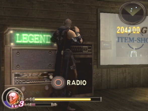 The radio is on the left outside the shop. It does nothing 'cept for narrating Godhand's 'backstory', whose text is written in the instruction booklet.