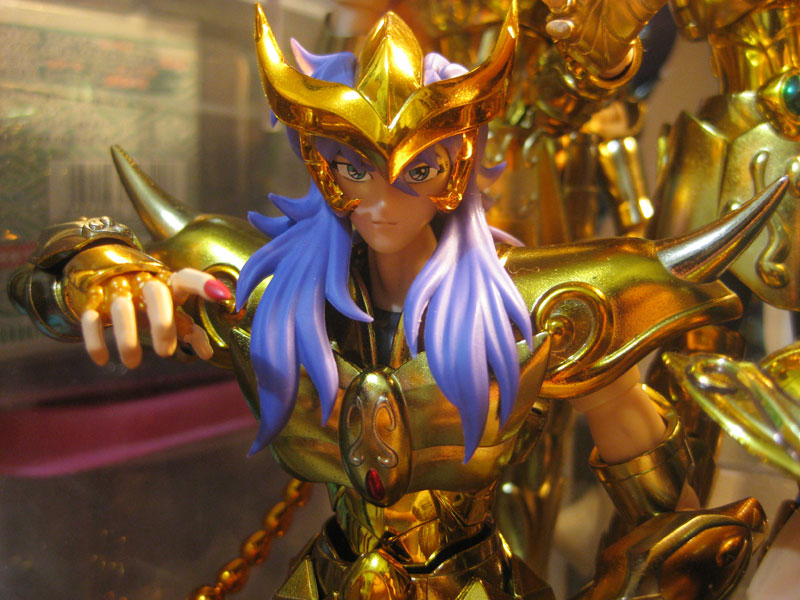 The figure: Like Leo (Aiolia), appearance accuracy, armor beauty and flexibility are perfect. However, due to the horn structures on his shoulders as well a convex chestplate, he becomes the bulkiest of all the Gold Saint figures I currently own. Still, he is able to stand properly no problem. Like Shaka (Virgo), he looks exceptionally bright if placed under/near a spotlight.